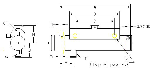 This exchanger is illustrated without a mounting bracket. We have mounting brackets for virtually any mounting configuration. The exchanger is mounted on the bracket with cushioning material, and held in position with stainless steel clamps (sold separately). All exchangers are supplied with a zinc anode.