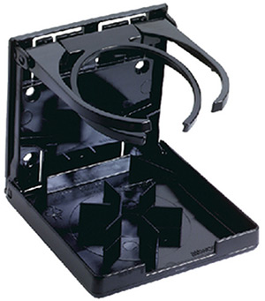 462-23-116354 Self-leveling drink holders with slot for coffee cup handle. For boats, cars, and RVs. Molded plastic. Includes gimbaled surface-mounting bracket. Self-draining. Color: Black, Size: 4" H x 4-3/8" W", Case: 6